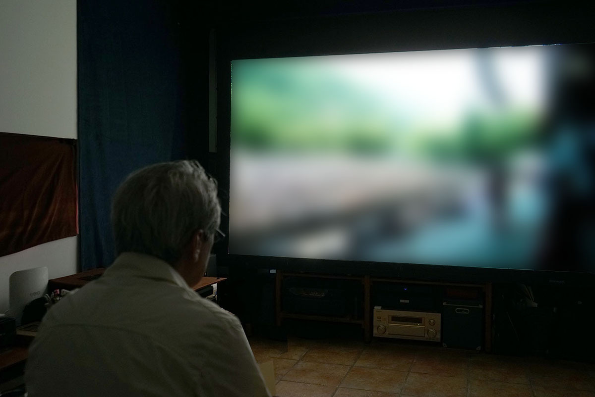 出水 ざっと説明すると、うちのホームシアターはリビング兼用で、映像は110インチスクリーン、サラウンドは7.1.4chのイマーシブ再生に対応済。スクリーン正面がベランダへの出入り口なので、シャッターを付けて昼間でも遮光できるようにしました。