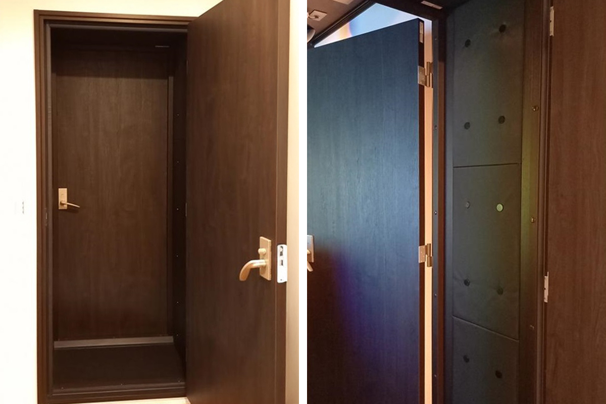 特に防音効果を高めるため、部屋の中に部屋を設ける「ルームinルーム」の手法を用いています。部屋の周囲には300mmの空気層を確保することから、限られたスペースをいかに最大限活用できるかを考慮するとともに、オーナー、ハウスメーカーとともに綿密なお打ち合わせを幾度となく重ねてまいりました。