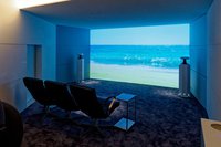 2Fにはじっくり体験が可能なハイエンドオーディオルームに加えて、リビングをイメージした内装に防音設備を施したシアタールーム「WHITE」、100型以上のスクリーンでプロジェクターの比較視聴が可能なシアタールーム「BLACK」を常設している。