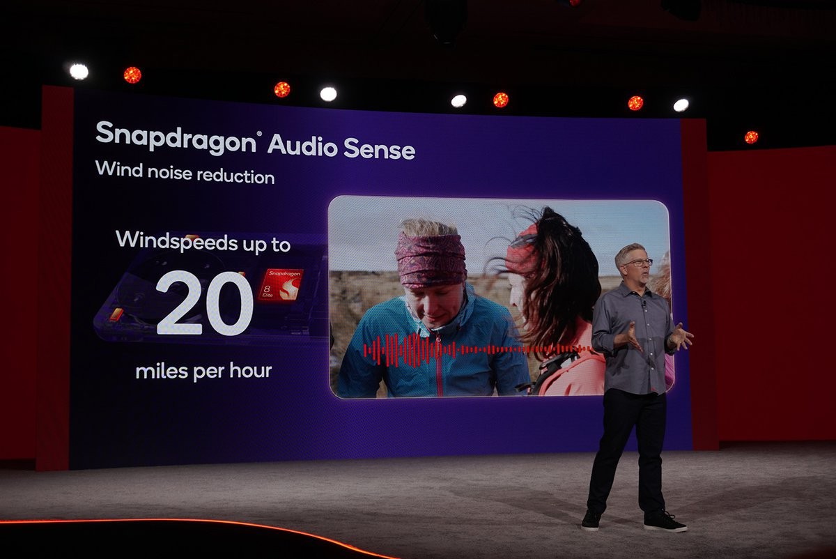 Snapdragon Summitの会場で、Snapdragon 8 Elite Gen 5を搭載するリファレンスモデルのスマートフォンで集音した音声を、市販のワイヤレスヘッドホンで聴くことができた。5メートルほど離れた場所でスピーチをする話者の声がクリアに聞こえる。ノイズリダクションにも不自然さを感じない。