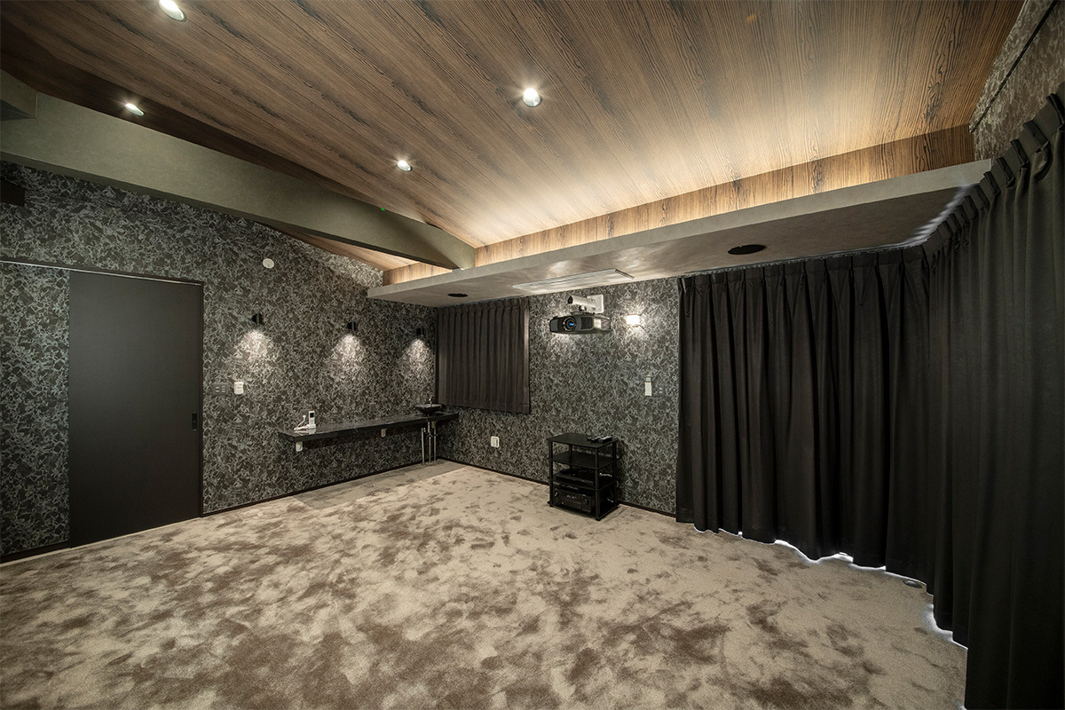 オーナーは就寝前にリラックスして映画を見るのがお好きだそうで、シアタールームは一人でくつろぐのはもちろん、お子さんやお孫さんを招いたりして楽しんでいる。オーダーどおり、一息ついて気兼ねなく映画を楽しめる、憩いのプライベートルームが完成した。