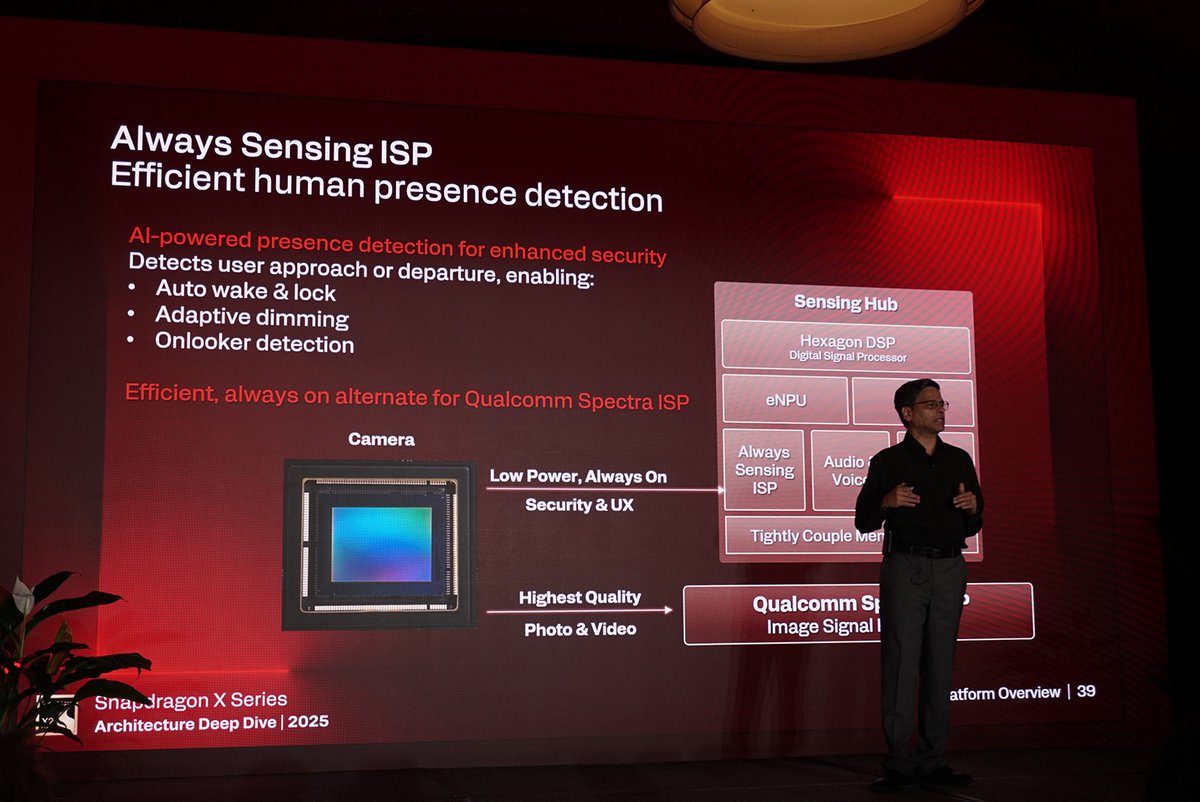 サブシステム内には専用のHexagon DSPとデュアルマイクロ埋め込みeNPUを備えており、PC本体を起動させることなく、高度なAI処理を実行する。