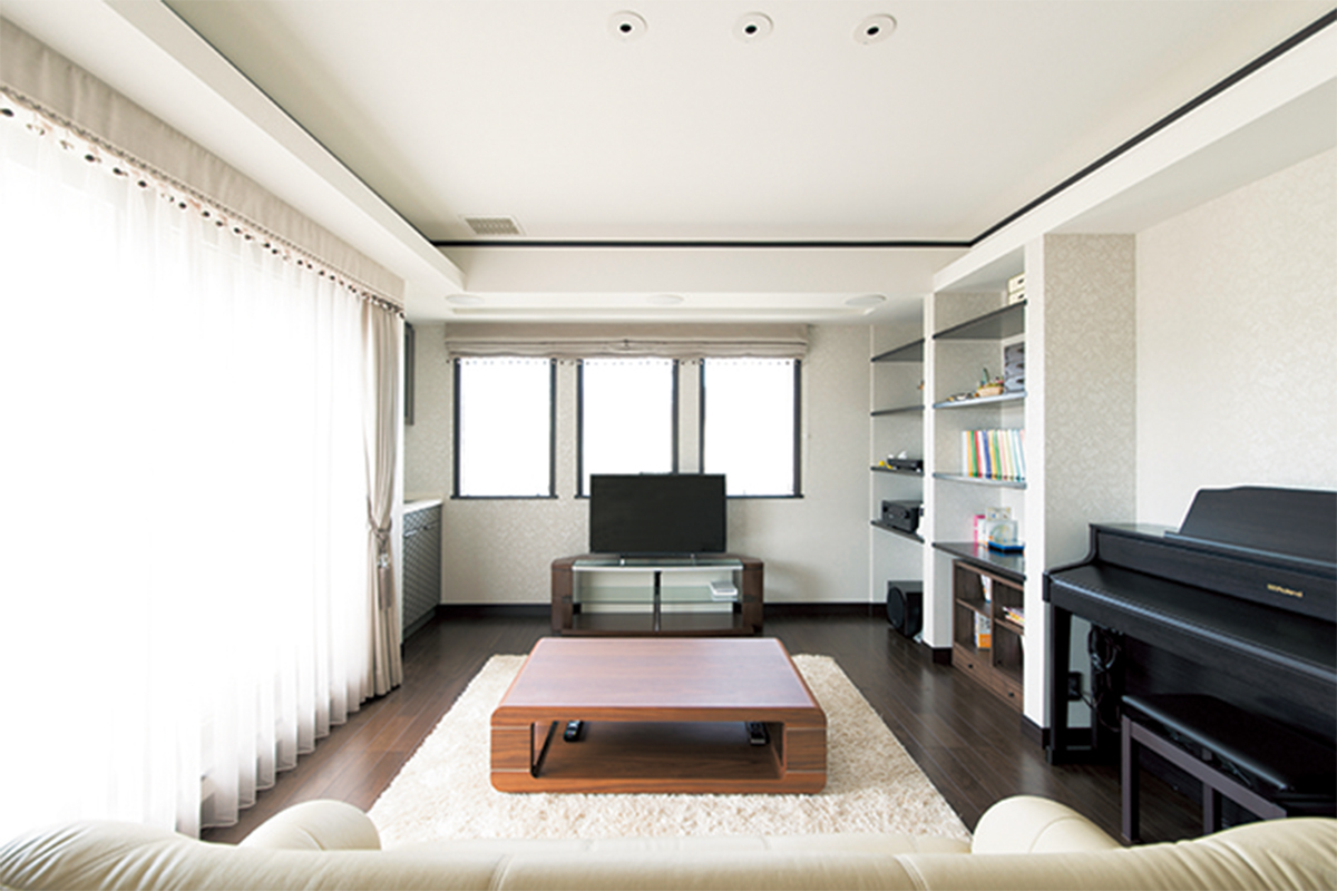 家族がくつろぐ空間に大画面! 本格システムを開放感を損ねず美しくインストール