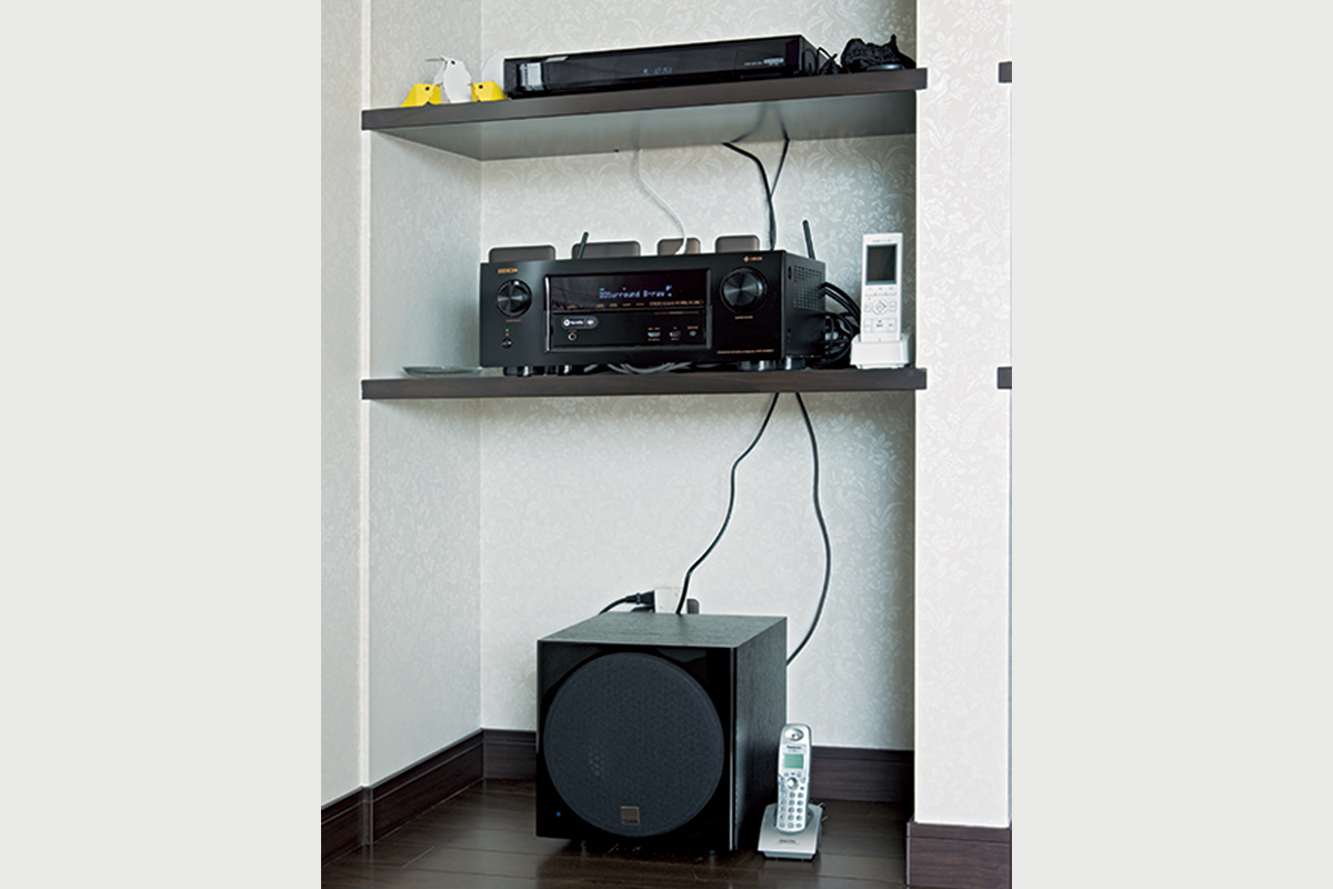 インストールを手がけたのはホームシアター滋賀 ウイニングの松尾祐司氏だ。ご家族がくつろぎやすいように、機器はすべてビルトイン。ご家族への心遣いが行き届いた、すっきりとした空間に仕上げている。