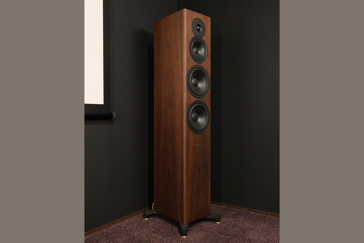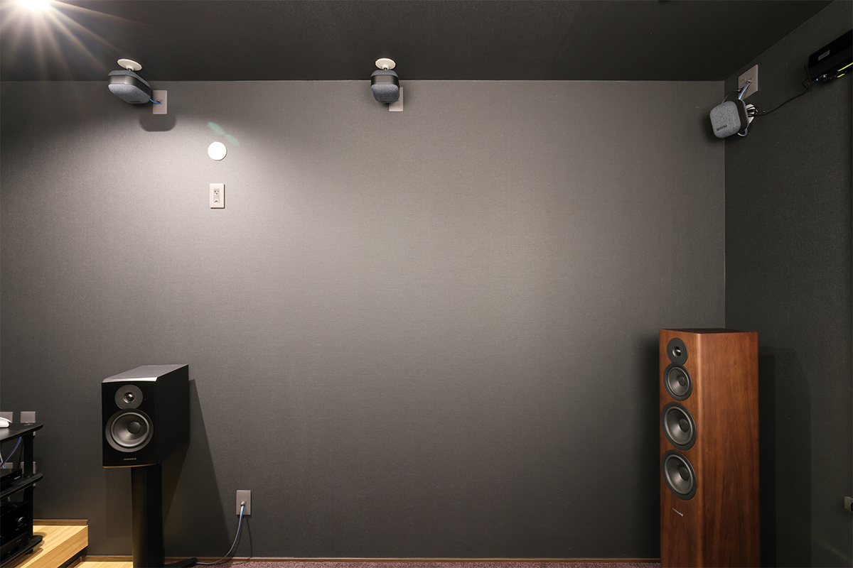 伊藤さんがこだわったのはスピーカー。オーディオ・サトーのショールームでスピーカーの比較試聴をしたところ、北欧の名門ブランド・DYNAUDIO「Emit 10」のサウンドに一聴惚れ。Emit 10よりもハイクラスの「Evoke 50」をフロントスピーカーに据え、DYNAUDIOを中心とした7.0.4chを構築した。