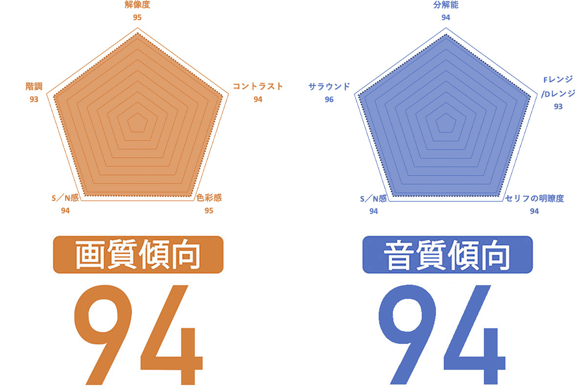 Dolby Visionだが、ピークを強調したシーンは少なく、むしろ南国の光の描出に寄与。CH12/15南国の夜の描写が美しい。CH1は、ユーモラスなエイリアンが跳梁する『スター・ウォーズ』のパロディ。CH2/9/14のロケ実景(オアフ島)はBT.2020の広色域が発揮され美しい。