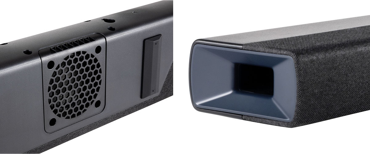 スマートなボディに3ウェイ・6スピーカーを内蔵。本体の両サイドに25mmトゥイーターと45×90mmミッドレンジを配置し、さらに75mmサブウーファーも2基搭載している。これらの基本的な仕様は2代目モデルDHT-S217と同じだが、サウンドマスターによるチューニングを行うことで音質を進化させているそうだ。