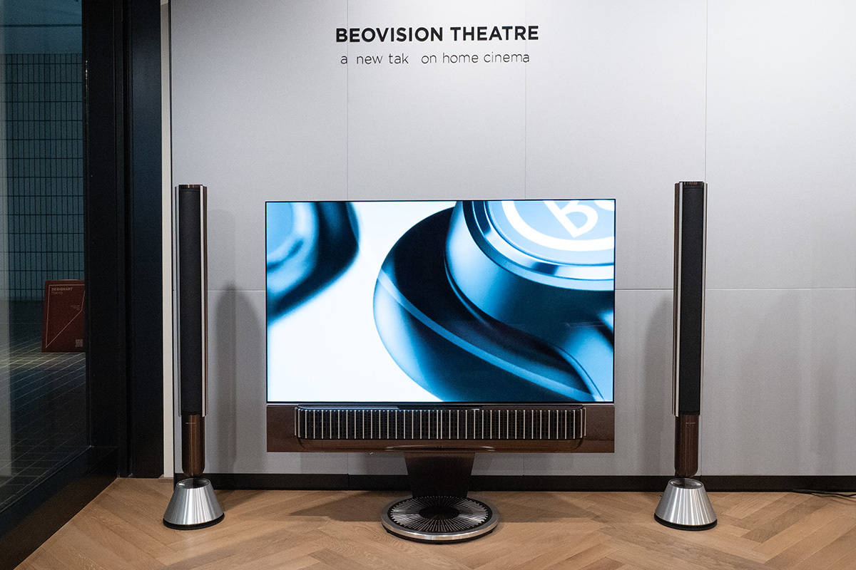 そして、それだけで終わらないのがオーラス流。夜になれば、B&Oのホームシアターシステム「Beovision Harmony」が展開され、同時にアンプやプレーヤーなどホームシアター関連機器の電源もオン。テレビで放送番組を見るもよし、好きな作品を選んで上映するもよし、お待ちかねの “おうち映画館” が自動で展開されていく。
