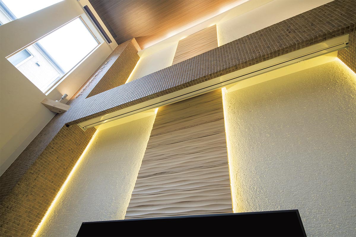 さらに、リラックスできる空間づくりに欠かせなかったのが調光だ。リビングとダイニングをゾーンにわけ、光をコントロール。団らんやテレビ、映画鑑賞などのシーンに合わせて調光値をセットし、いつでもワンボタンで呼び起こせるよう設定した。