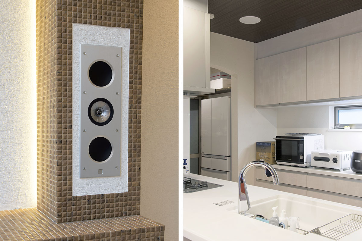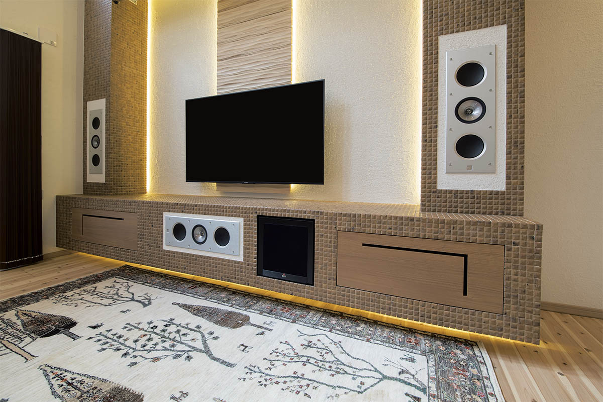 埋め込みスピーカーと壁面収納家具で美しくインストール