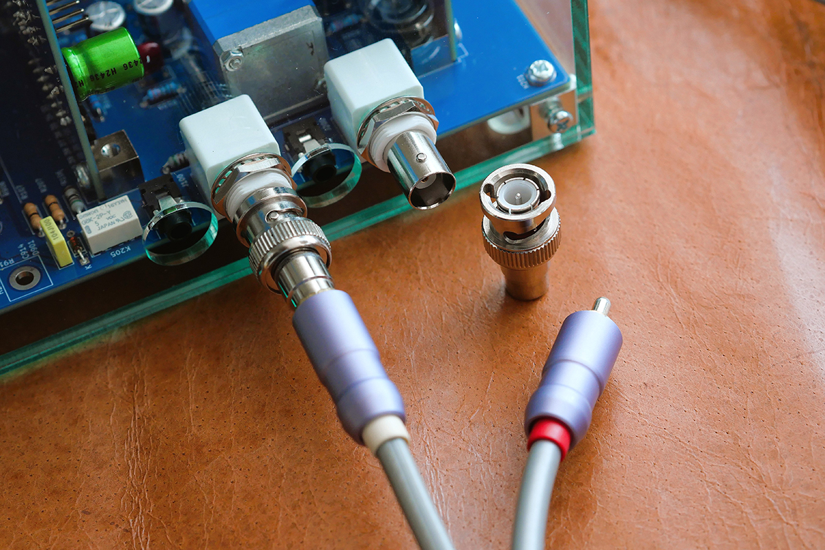 今回の試聴では共立エレショップで扱っている「BNCP-RCAJ RF変換コネクター」を使用した。価格は1個330円と手頃ゆえ、「TRHPA-KIT01」ご購入時には併せて入手されたい。