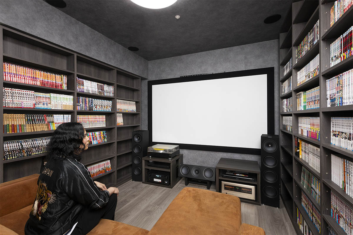 およそ7畳のマンションの個室を、新築引き渡し後にリフォームして、4K/Dolby Atmos環境の映画館をつくった伊藤さん。ミニシアターにも通い詰めていたという生粋のシネフィルで、かつて賃貸住まいのときから、DIYでホームシアターを楽しんでいたそうだ。