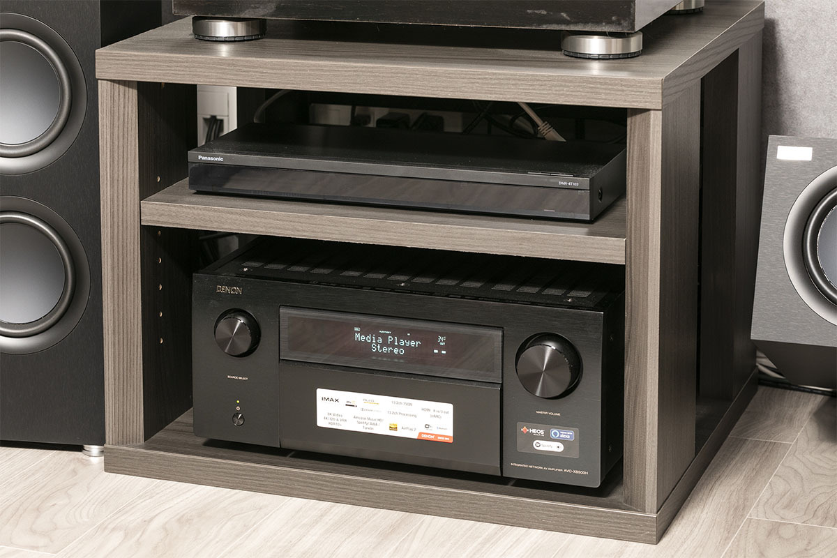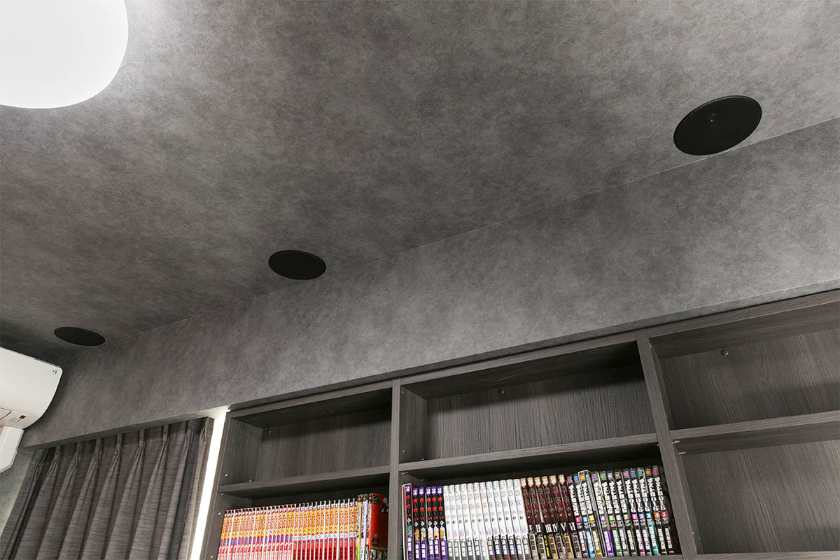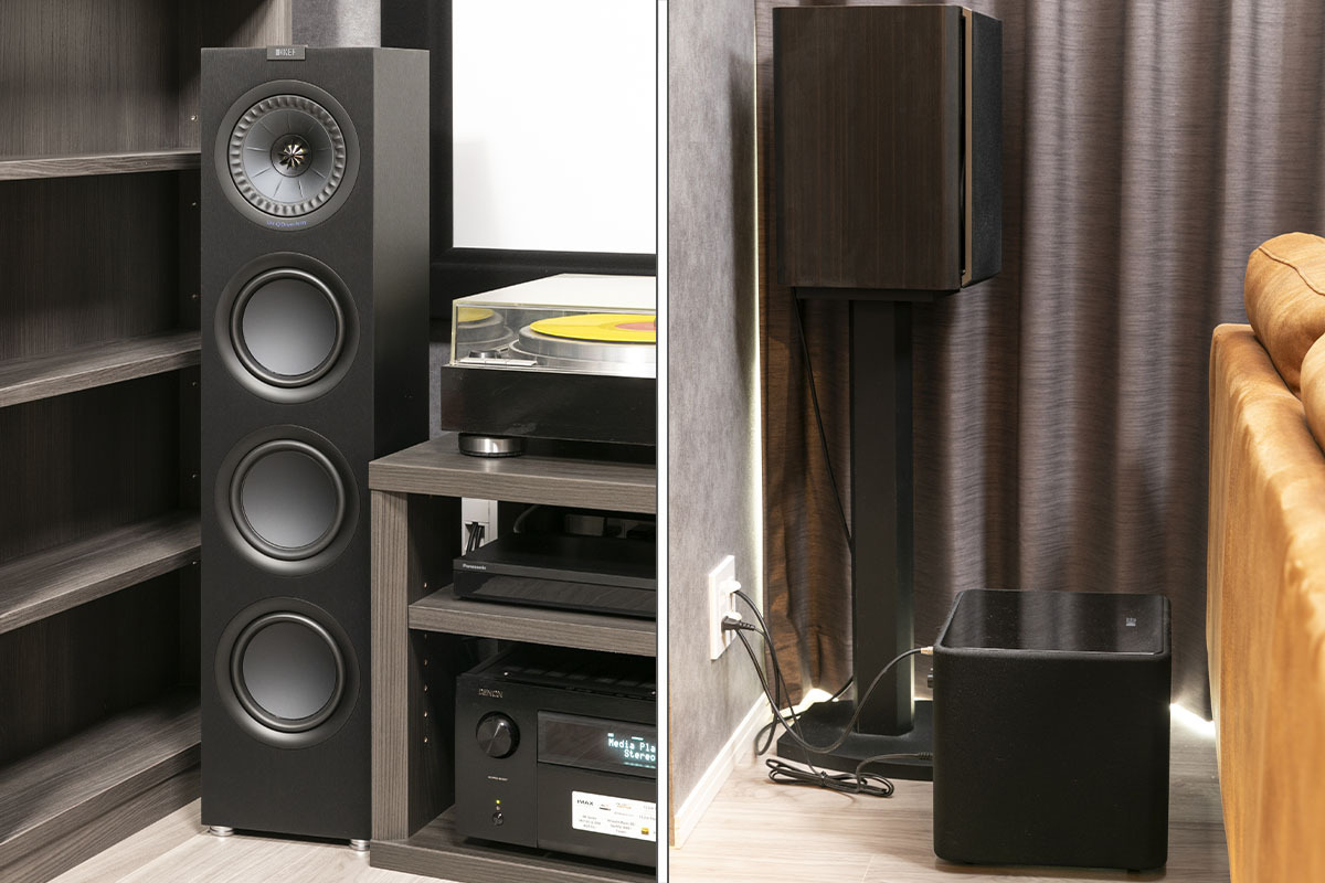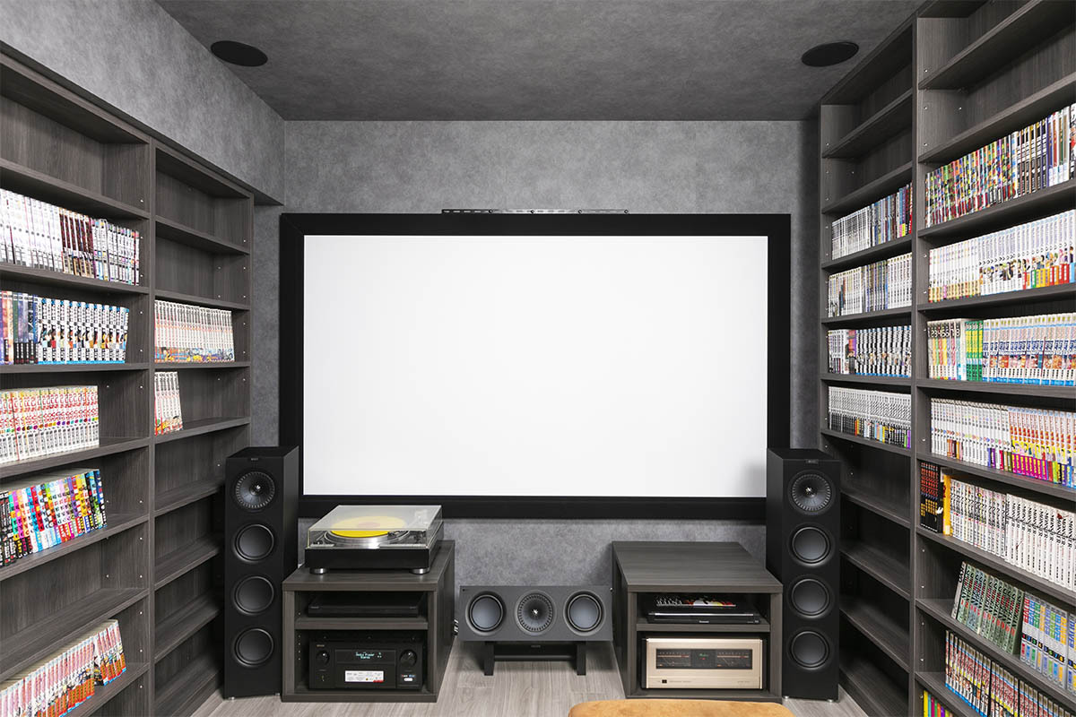 スピーカーは、フロント3本とトップスピーカーにKEFのQシリーズを用い、伊藤さんがお持ちだったJBLのスピーカーもリアスピーカーとして生かしながら、コンパクトな空間ながら臨場感溢れるDolby Atmos環境を構築している。