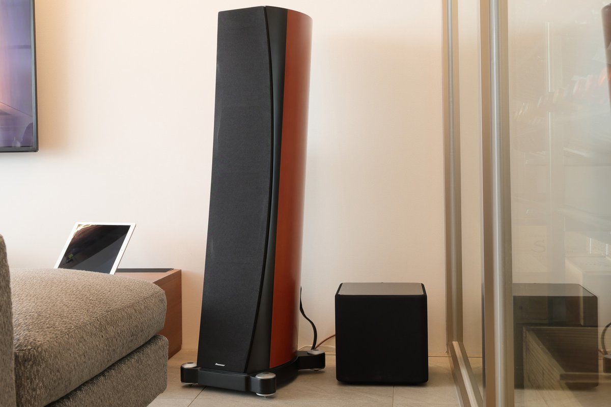 フロントLRには、パイオニアから2008年に登場したプレミアムスピーカー “EXシリーズ” のフロア型モデル「S-3EX-T」。本モデルは、吉原さんが以前からお持ちだったスピーカーであり、通常カラーとは異なる、天然木ビーチウッドを使用した特別カラーのチェリーブラウンモデルという部分からも、ホームシアターへの情熱が伝わってくる。