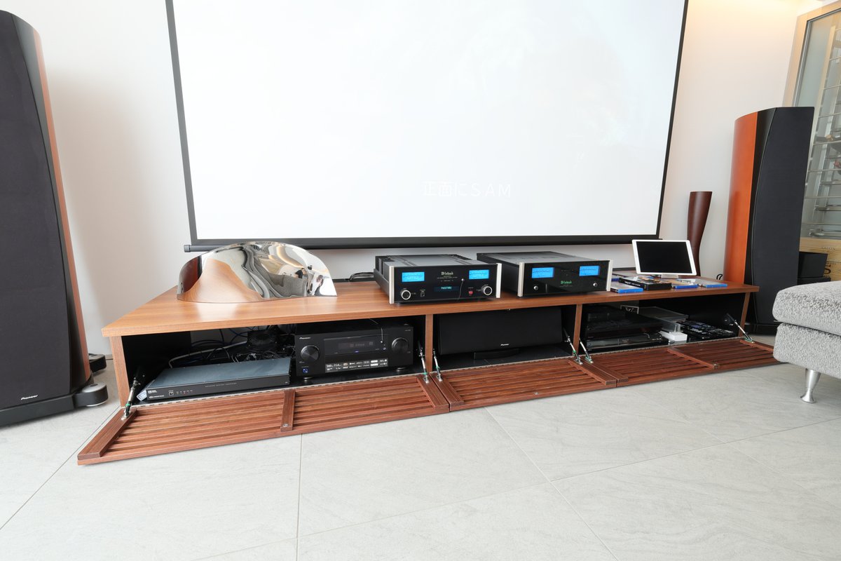 ワインセラーとキッチンをつなぐリビングにこだわりのシアターを!パイオニアとMcintoshが映える