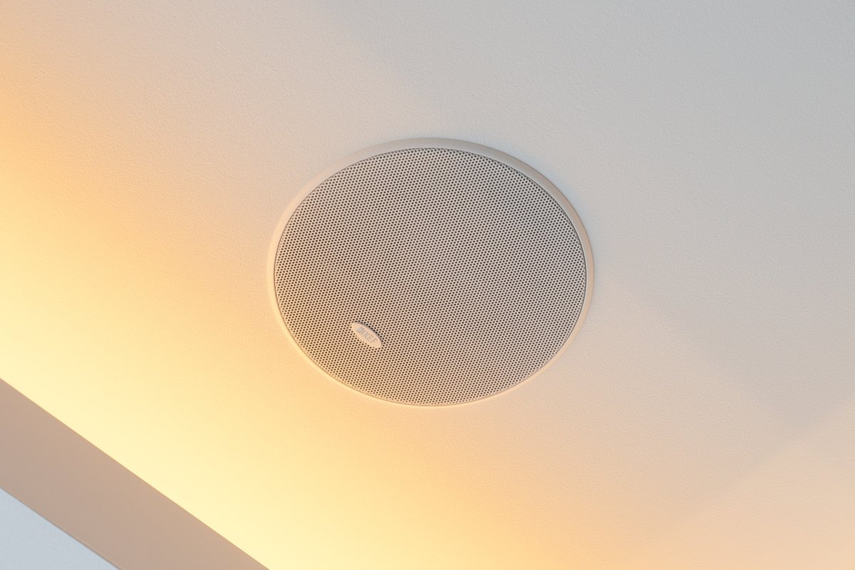 サラウンド/サラウンドバック/トップスピーカーには、スタイリッシュな薄型ベゼルが特徴的なKEFの埋め込みスピーカー「Ci130QR」を設置。