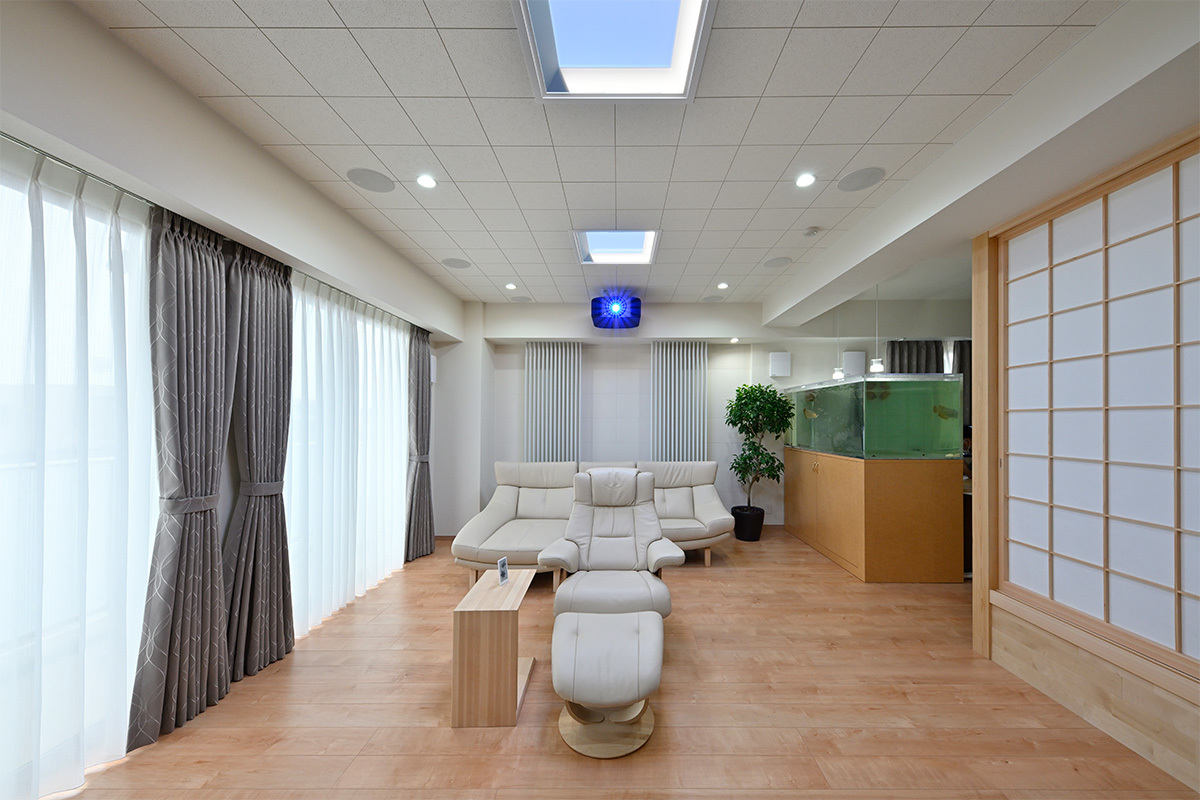 HOME THEATER DATA ●住宅形態:マンション/新築 ●ホームシアターの広さ:約23畳 ●画面サイズ:130型+83型 ●サラウンド:7.2.4ch ●インストール内容:機器設置、システムプランニング ほか