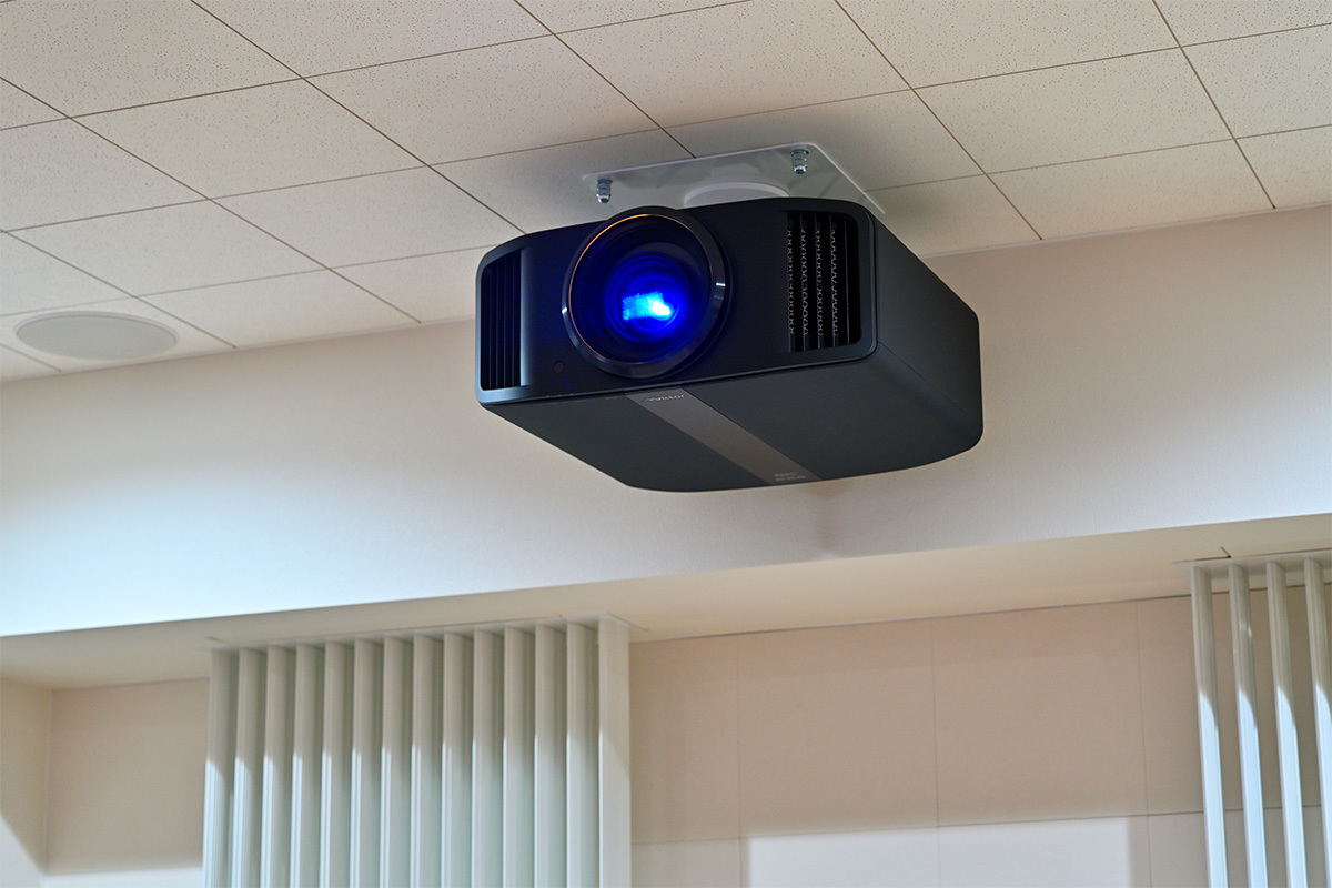 映像機器も規格外だ。スクリーンはこの空間に収まる最大サイズ、130型の大画面。プロジェクターはビクターの8K入力に対応した「DLA-V90R」。眼前に包み込むような映像の迫力、美しいコントラストに圧倒される。