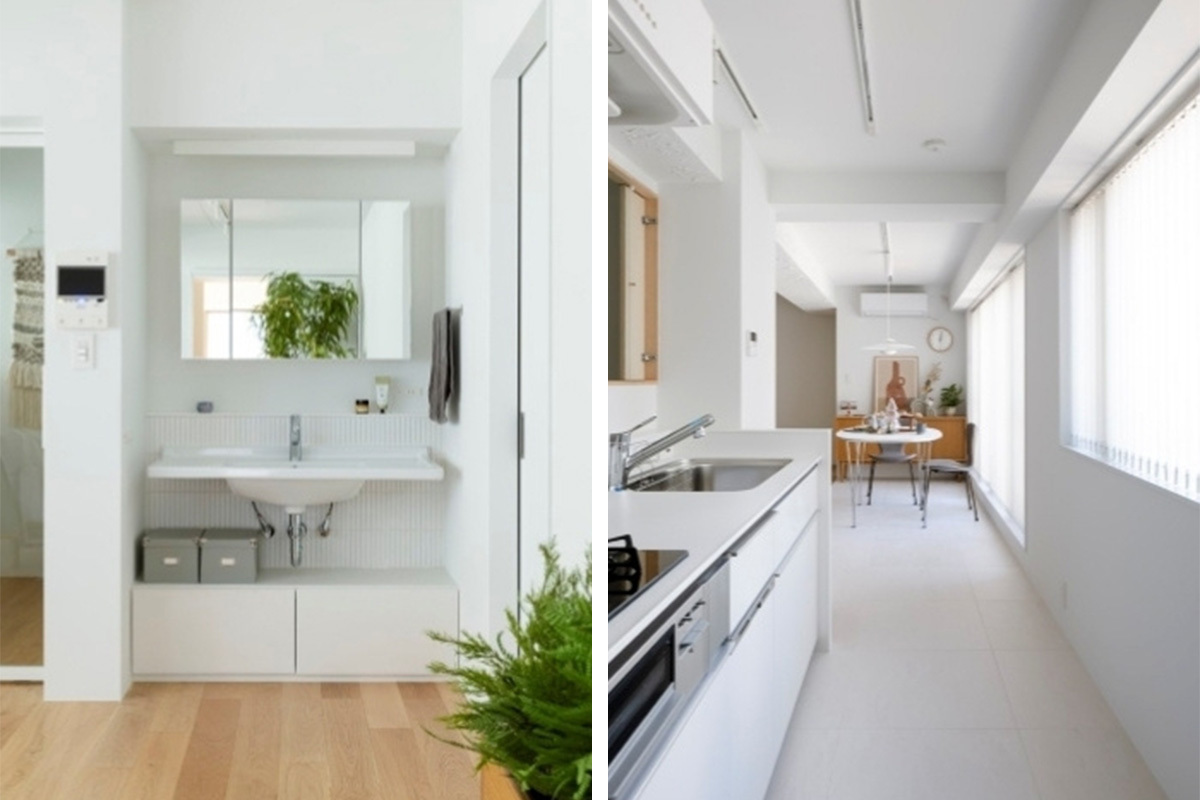 The R.では、間取りは自由設計、施工はフルスケルトンで行われ、壁内配線や電気工事も任意にデザインが可能だ。住宅の設備/デザインは、リノベるが仕様を厳選した3タイプからの選択式を採用している。この方式によって、購入を検討する方々の暮らしに合わせた間取りを確保しつつ、リノベにかかる手間とコストを低下させるという。