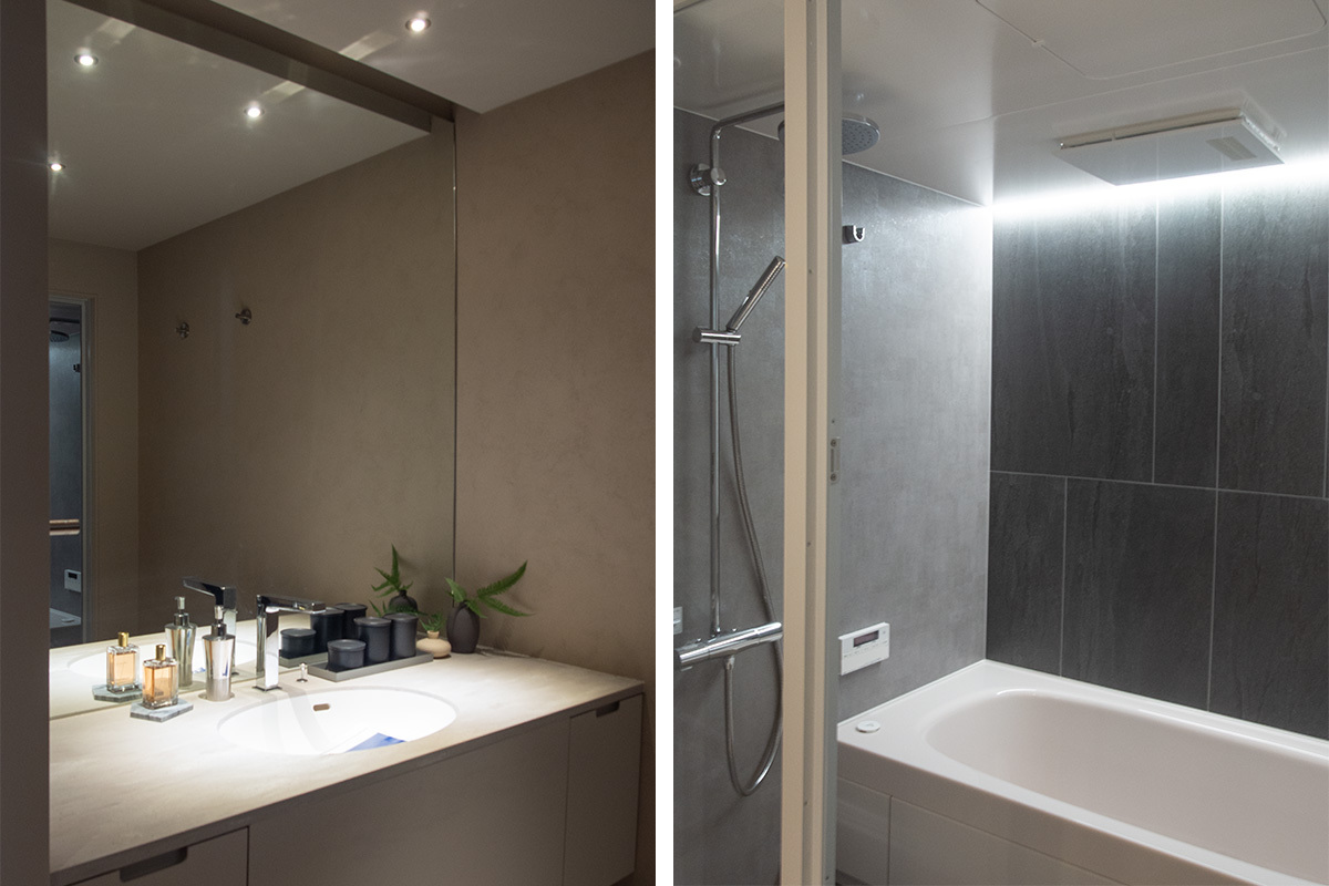 3つ目のG1は、家事を楽にしてくれる設備/機器に特化しているほか、グレートーンの内装と明るすぎない照明の演出で、スタンダードなE1と比べて落ち着きのある趣きとなっている。