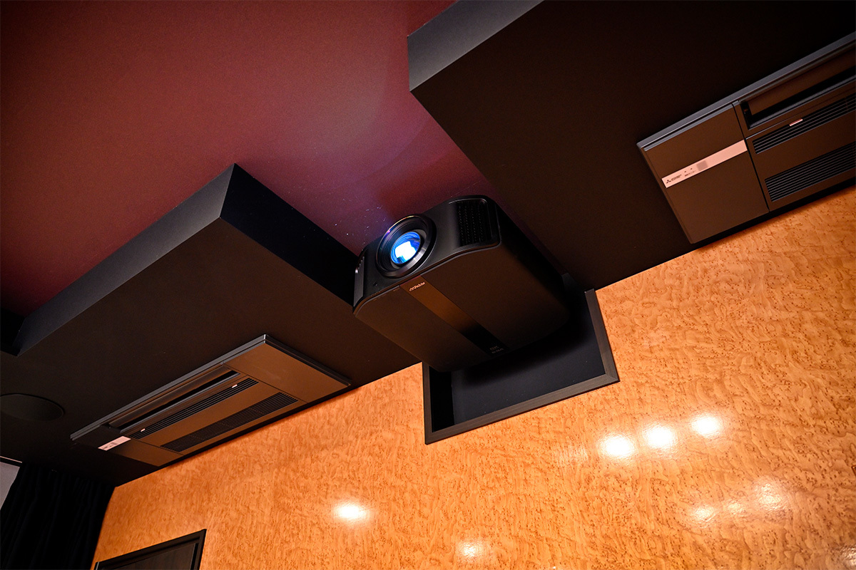 白眉なのは3本1組としたスピーカー構成をフロントとセンターに採用した点で、大画面全体からサウンドが届くように工夫している。これは渡邉氏がメーカーとやり取りを重ね、設置方法を吟味した結果だ。そしてプロジェクターもド迫力のサラウンドに負けない8Kモデル、ビクター「DLA-V90R」を選んだ。