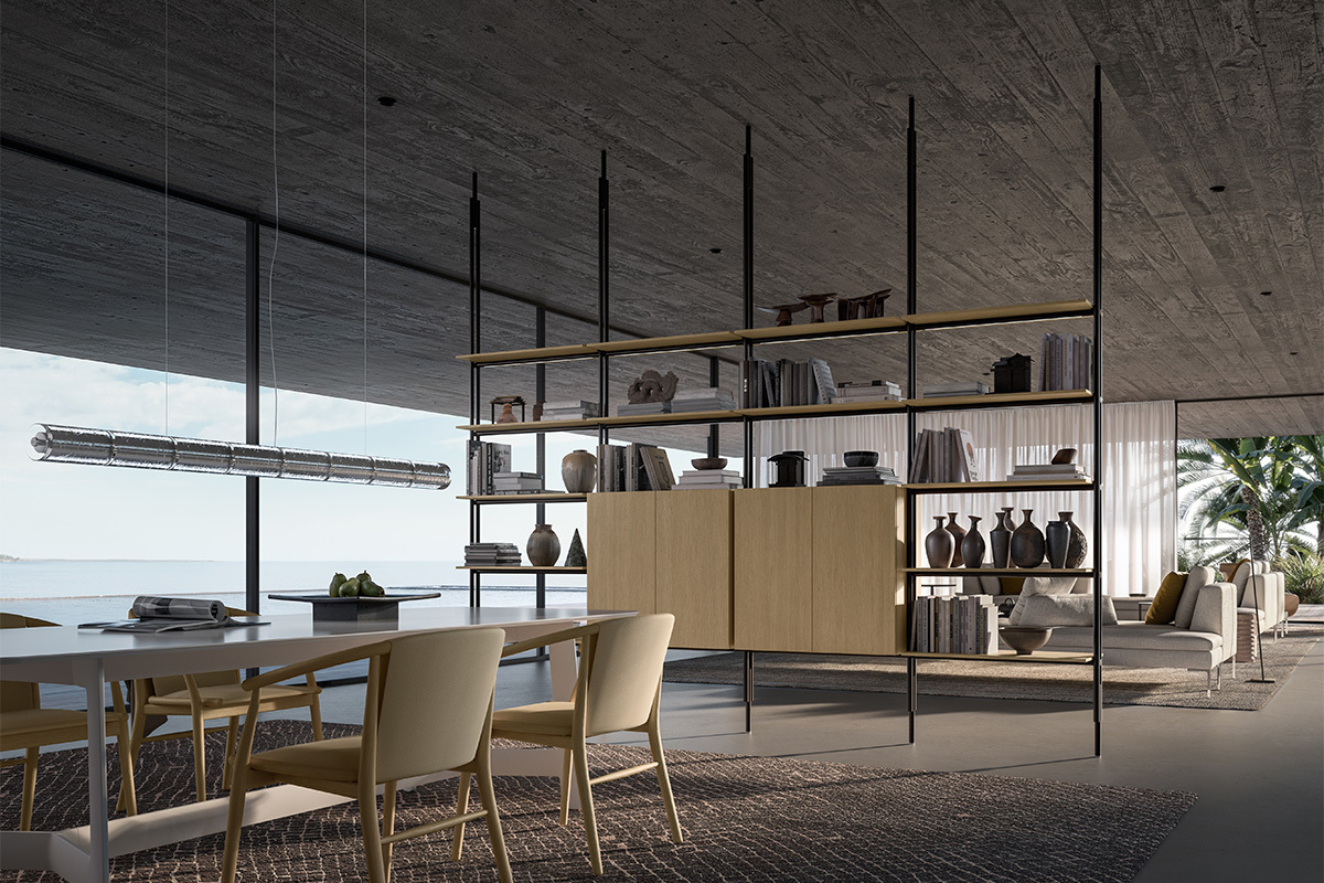 さらに、アントニオ・チッテリオによる収納システム「Flat.C(フラット シー)」を進化させた「Flat.C Frame(フラット シー フレーム)」が登場。ブックシェルフ兼収納ユニットに、新たな構造コンセプトを導入することで、自立型の建築的ソリューションへと生まれ変わった。