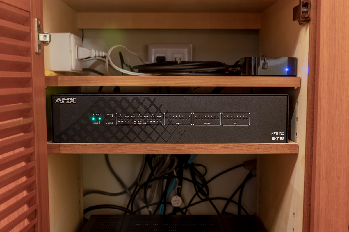 オートメーション ●液晶テレビ:ソニー XRJ-65A95L ●システムコントローラー:AMX NI-3100 ●ICSLan拡張コントロールボックス:AMX EXB-IRS4 ●TPControlアプリケーション:TPC-IPA、TPC-IPO ●VoIPルーター:ヤマハ NVR510 ●シンプルL2スイッチ:ヤマハSWX2100-8G、SWX2110-5G ●シンプルL2 PoEスイッチ:ヤマハ SWX2110P-8G ●無線LANアクセスポイント:ヤマハWLX202、WLX222 ●リブーター:MEIKYO RPC-M2CS