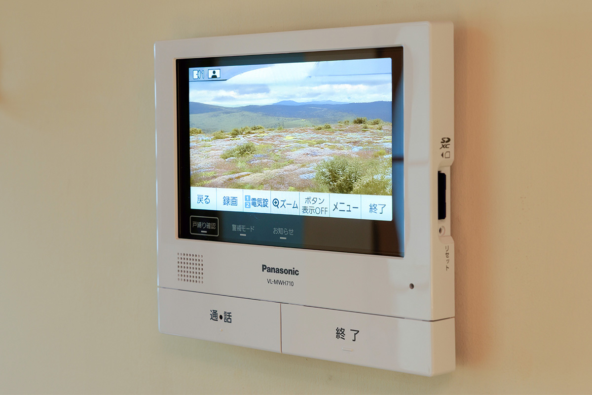 インタホーンはパナソニックの「外でもドアホン」を採用し、不在時に来客があっても、スマホアプリで外出先からインターホンの映像を確認、応対ができる。