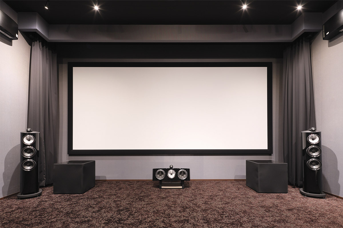 もう一方は16:9/150型の電動スクリーンで、シネスコ/185型の前に降りるよう設置。プロジェクターのレンズメモリー機能と、後述するホームオートメーションシステムを組み合わせることで、作品にあわせて瞬時に切り替えることができる。