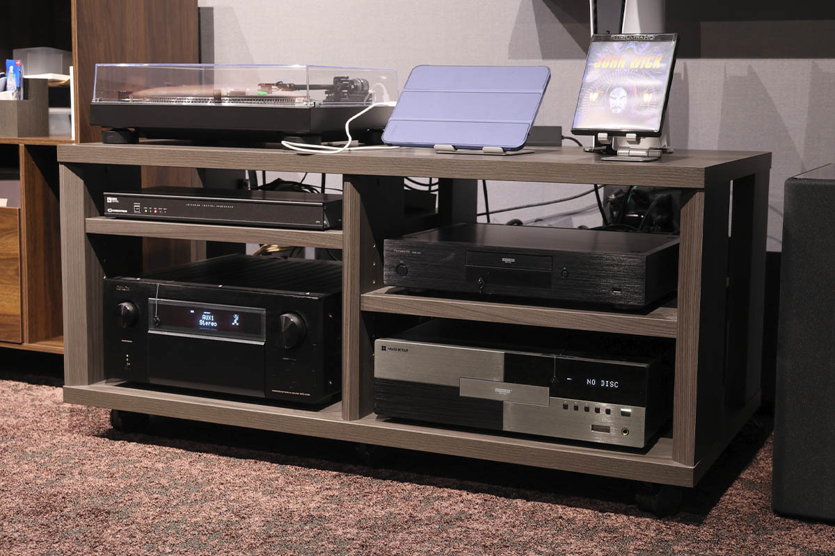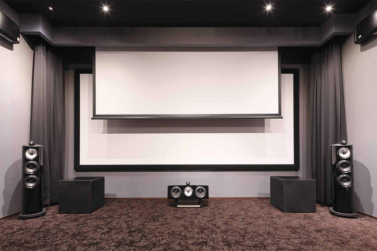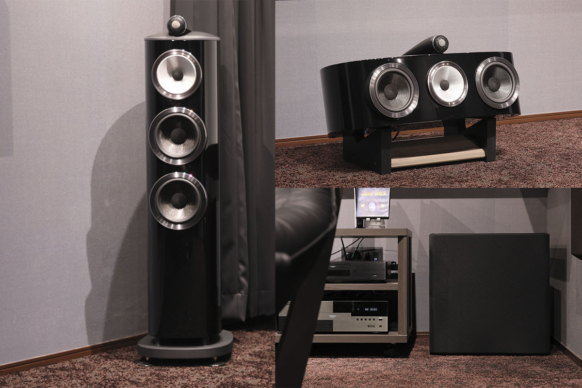 フロント3chには Bowers & Wilkinsの “800 Diamond4シリーズ"、サラウンド/サラウンドバック/トップにはHometheater Factory「HF-SP520TB」と、スピーカーにもショールームでデモを行ったものと同じモデルをチョイスした。