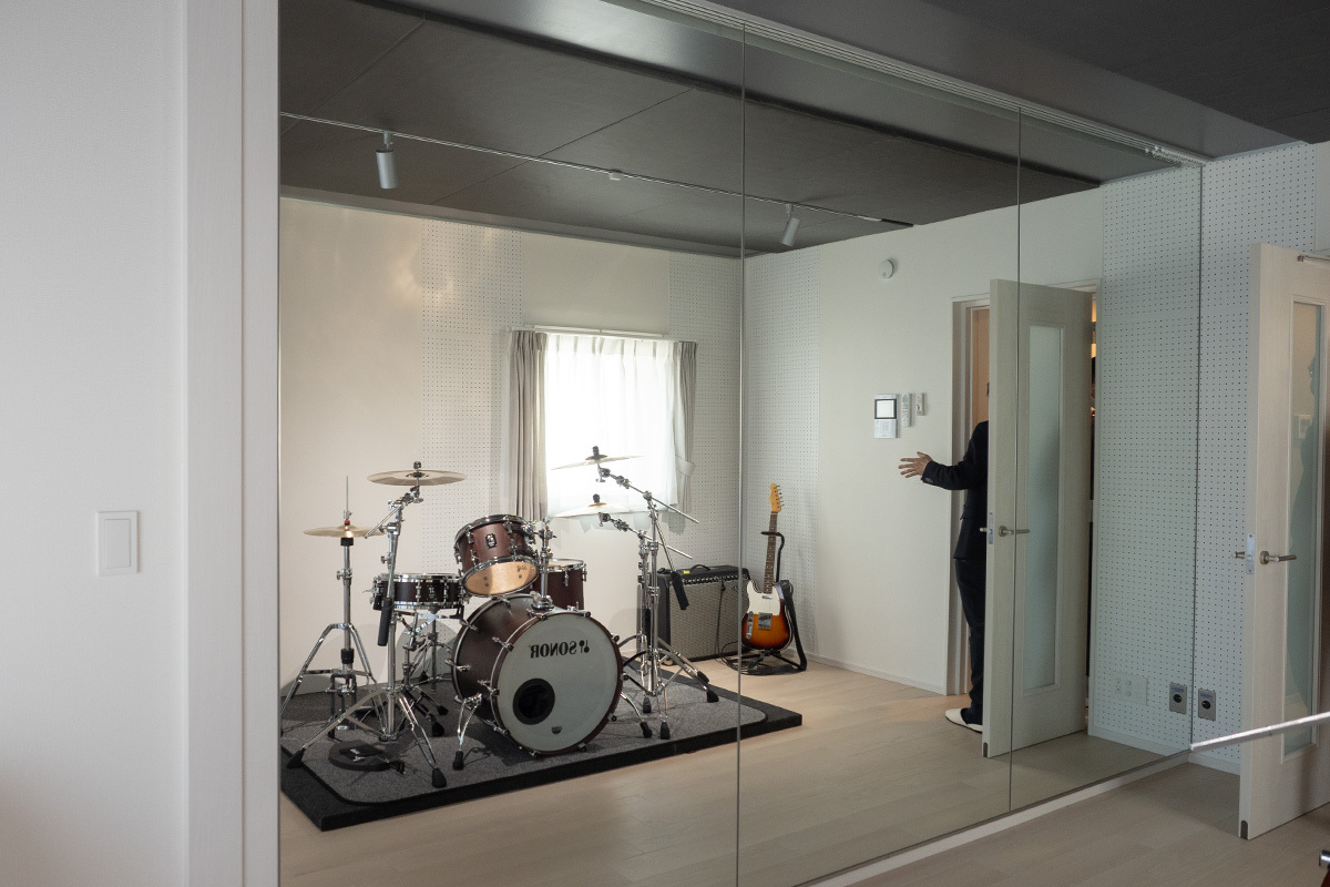 入居者は自由にいつでも趣味が楽しめるため、住居として防音賃貸マンションを選択する方が半分以上だという。窓際を寝室スペースに、リビングダイニングは居住スペースとして床座様式で生活するパターンが多いとのこと。作曲家が入居して、そのまま部屋で録音まで行い、各プラットフォームに配信された例もある。