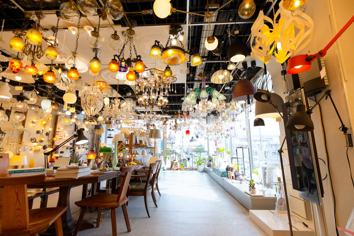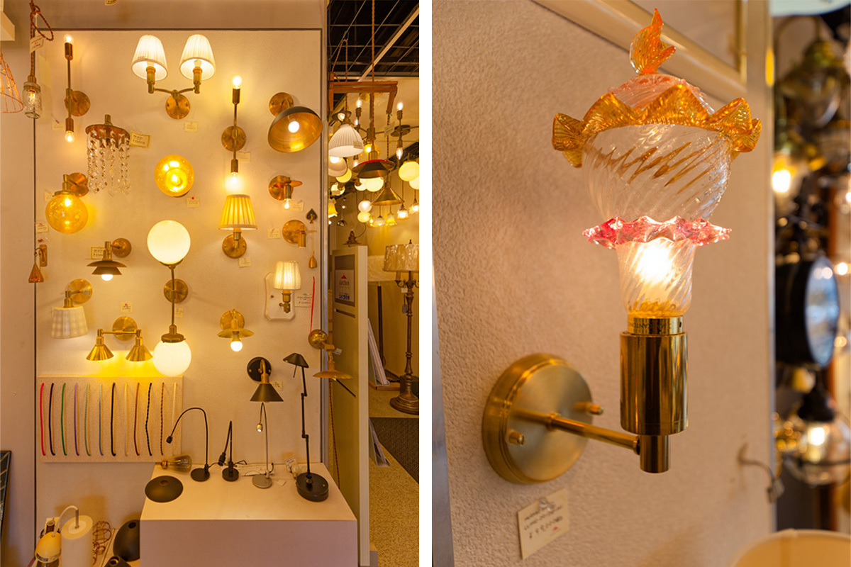 これら展示されている照明の中には、シバタ照明オリジナルブランドのものや、柴田さんが海外で直接買い付けてきたものもあるという。
