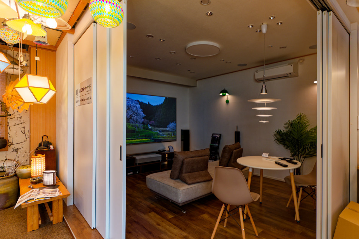 静岡・沼津に、約1,000点の世界のランプを一堂に展示販売する老舗店「シバタ照明」がある。1階から3階までの3フロアあるうち、最上階の3階にあつらえられた、一流照明器具とともに調光の効果も体験できる本格的なホームシアターショールームを訪れた。