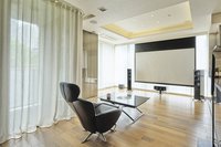 HOME THEATER DATA ●住宅形態:戸建/新築 ●ホームシアターの広さ:20畳 ●画面サイズ:120型+50型 ●サラウンド:7.1.2ch ●インストール内容:機器設置、システムプランニング ほか