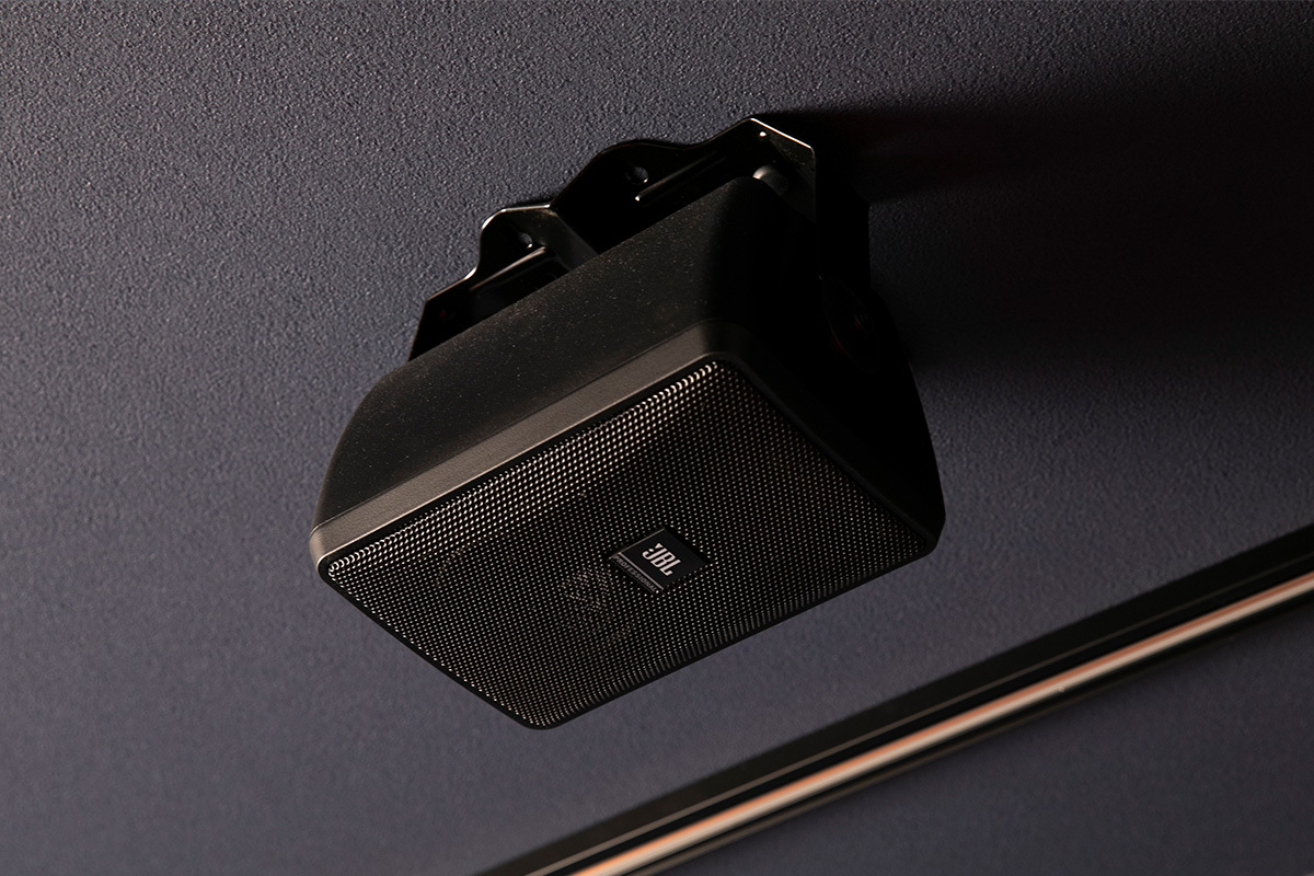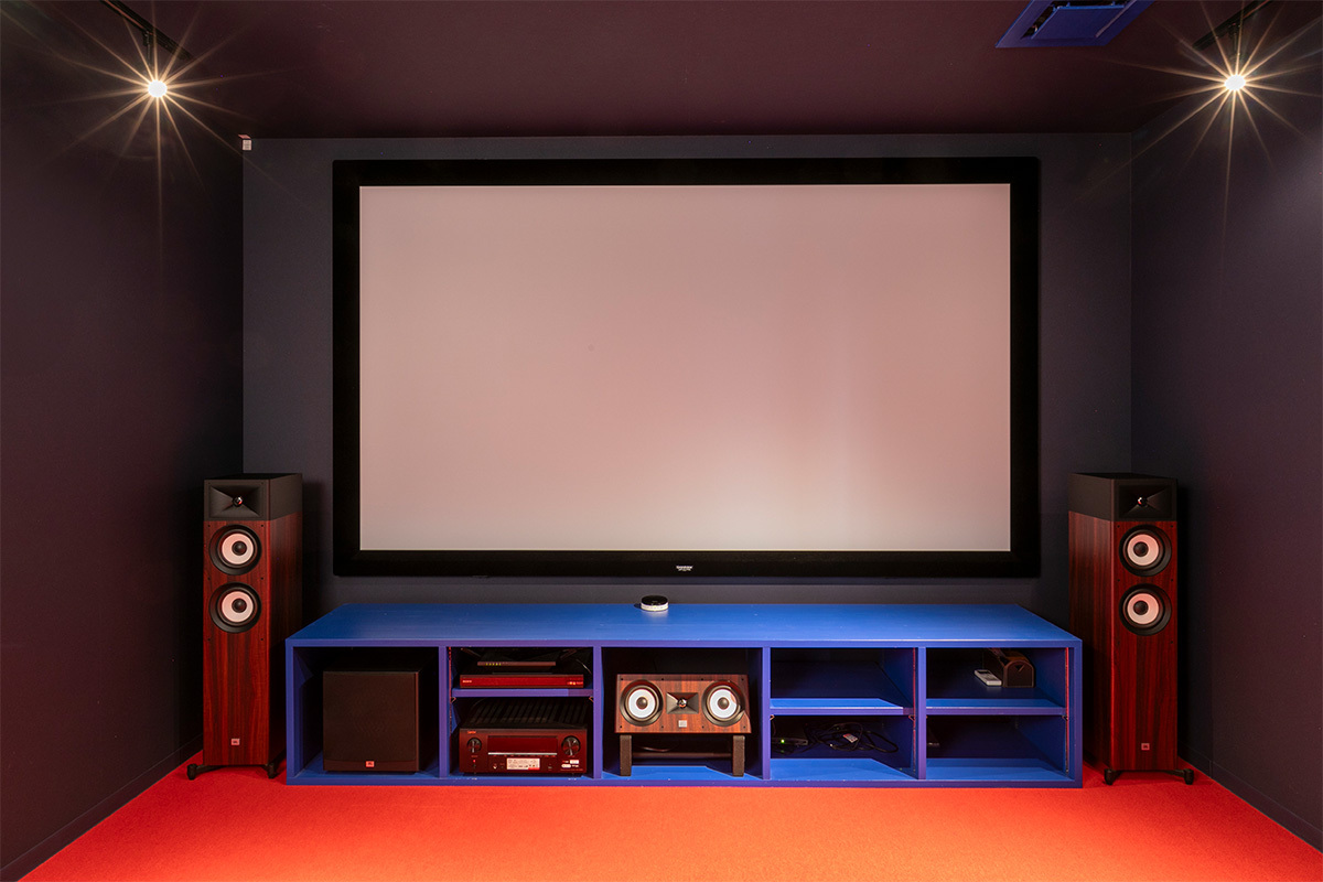 スピーカーは多くの映画館へ採用実績を持ち、世界シェア70%以上を誇るJBLブランドで統一。音のつながりを強化して没入感を高めた。