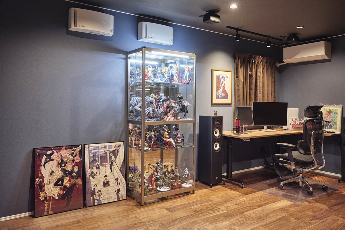 造作棚も曾根氏が設計。機器を収めたほか、漫画やフィギュアなどのコレクションをディスプレイ。Kさんの「好き」を詰め込んだホームシアターが完成した。