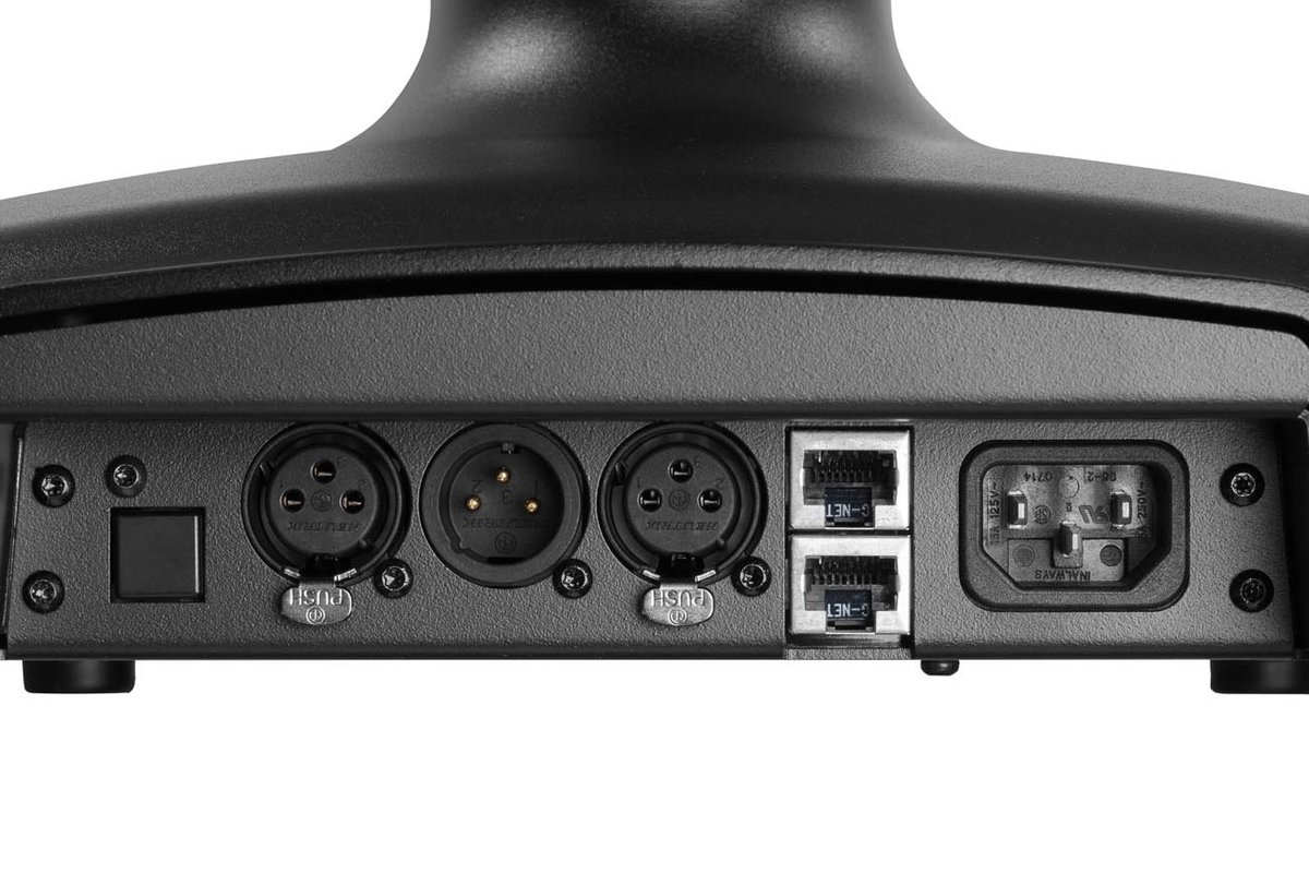 スピーカー本体にはケーブル類を接続する箇所がなく、電源、LAN、XLR端子はスピーカースタンドの土台背面に備わっている。これによりケーブルが露出しない見栄えの良さを確保しながら、スマートに設置することができる。
