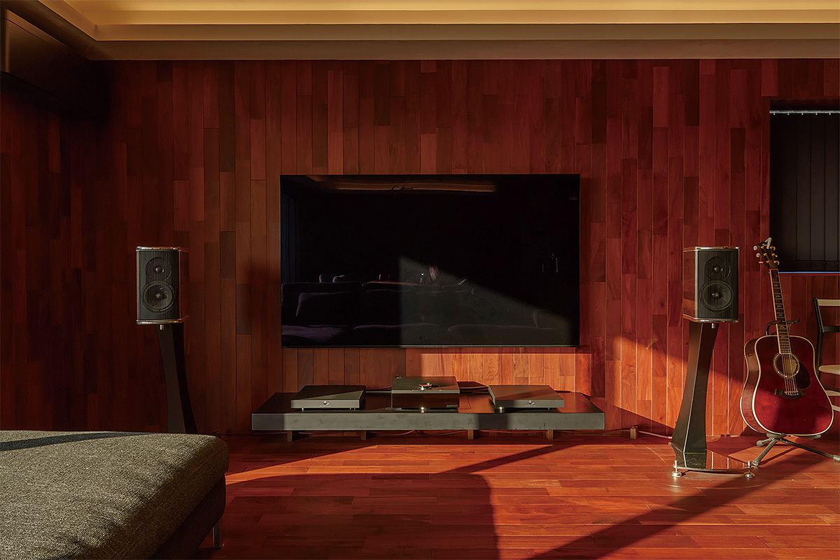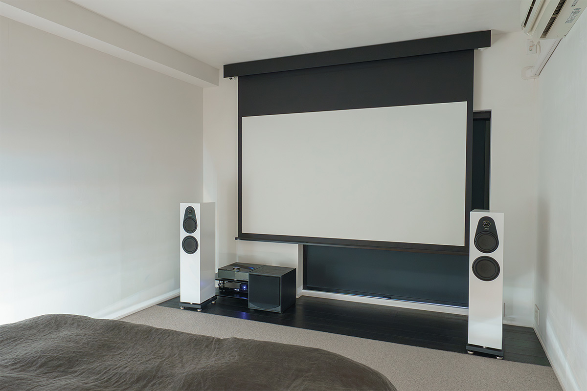 2chミニマル・リビングシアターと100型&4.1ch寝室シアターを用途に応じて使い分け