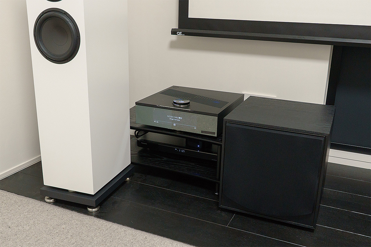 三宅氏はKさんの暮らしを熟慮し、リビングと寝室の2つのシアターを提案。製品はミニマルデザインのLINNを中心に、おもてなしをするリビングは2ch+テレビのシステムとし、プライベート空間の寝室は臨場感重視で4.1chのスクリーンシアターを提案した。