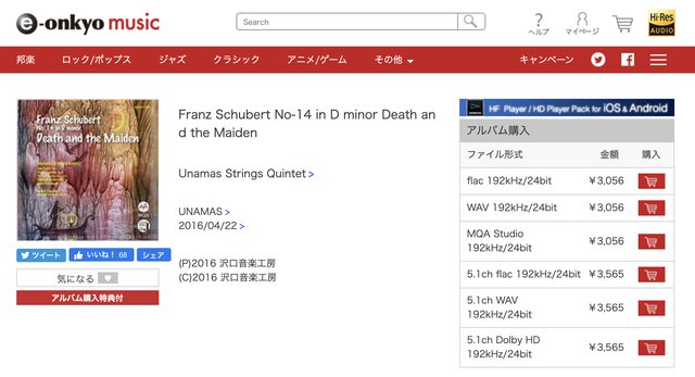 UNAMASは192kHz/24bitのMQA Studio音源のほか、5.1chの配信にも力を入れている