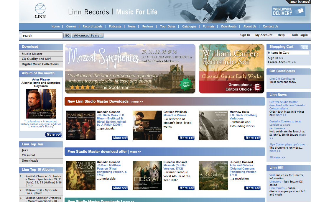 192kHz/24bitのスタジオマスター音源を配信している「Linn Records」。DRMフリーなので複数機器で音源を共有することも可能