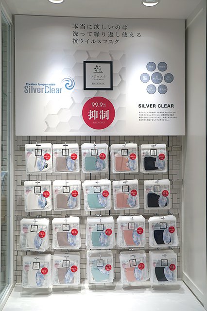 抗菌性能を備えた「コアマスク」(2枚組1,200円・税抜)。店舗オープン後飛ぶように売れ、あっという間に完売してしまったそうだ