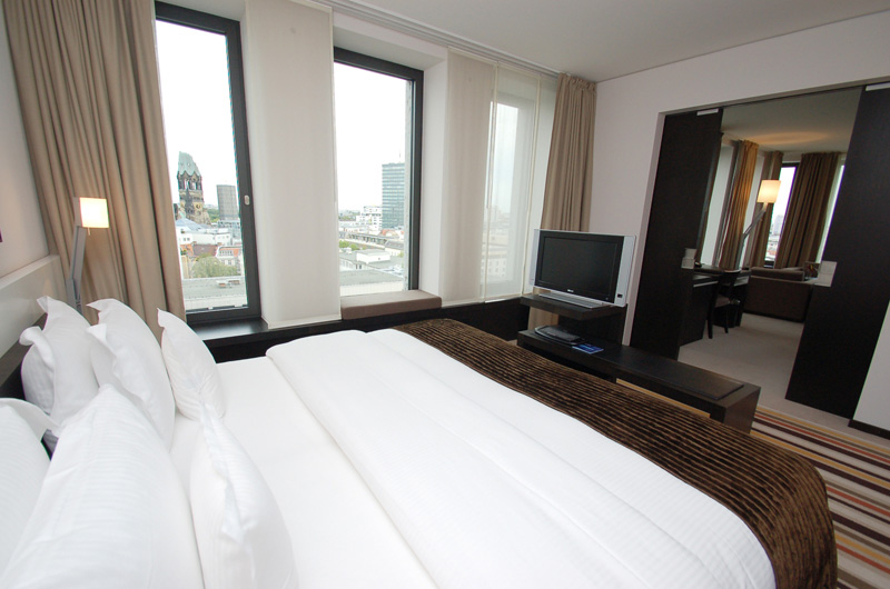 ベッドルームは窓の外には、ベルリンを代表する建築物カイザー・ウィルヘルム教会が目の前に