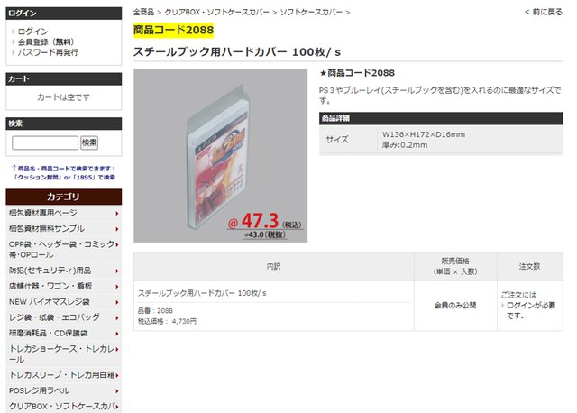 ホームページ上ではもっとストレートに「スチールブック用ハードカバー」と銘打たれていた