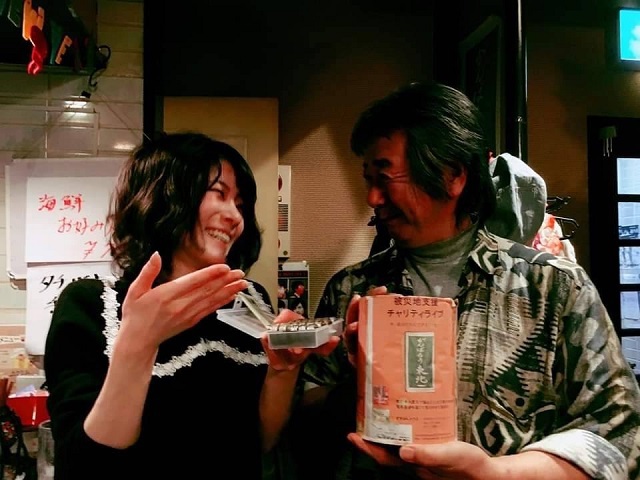 路上ライブの投げ銭はライブハウスの震災復興支援募金に寄付する。