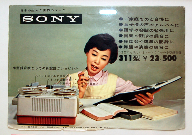 録音機の広告。音楽や“野球”の録音に、という使用用途が時代を物語る