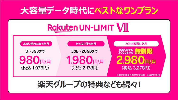 楽天モバイルが発表した新料金プラン「Rakuten UN-LIMIT VII」は、現在の「Rakuten UN-LIMIT VI」と比べ、通信量が1GB以下であれば月額0円で利用できる仕組みが削られている
