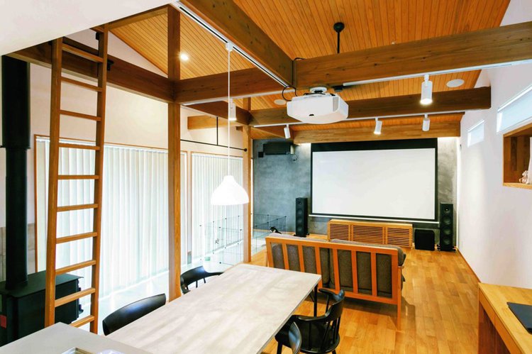 自然素材あふれる天井高4mの大空間シアター!4K/120インチ&5.1.2ch環境を美しくレイアウトするプロ技に注目