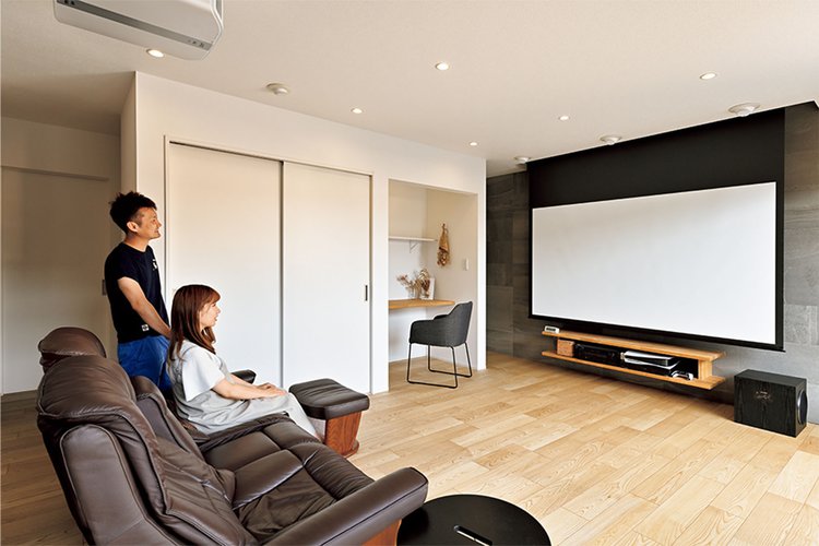 自然素材あふれる天井高4mの大空間シアター!4K/120インチ&5.1.2ch環境を美しくレイアウトするプロ技に注目