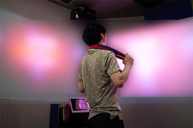 大音量試聴テストは、カラオケのデュアルプロジェクター部屋にライブ映像を映し出して実施
